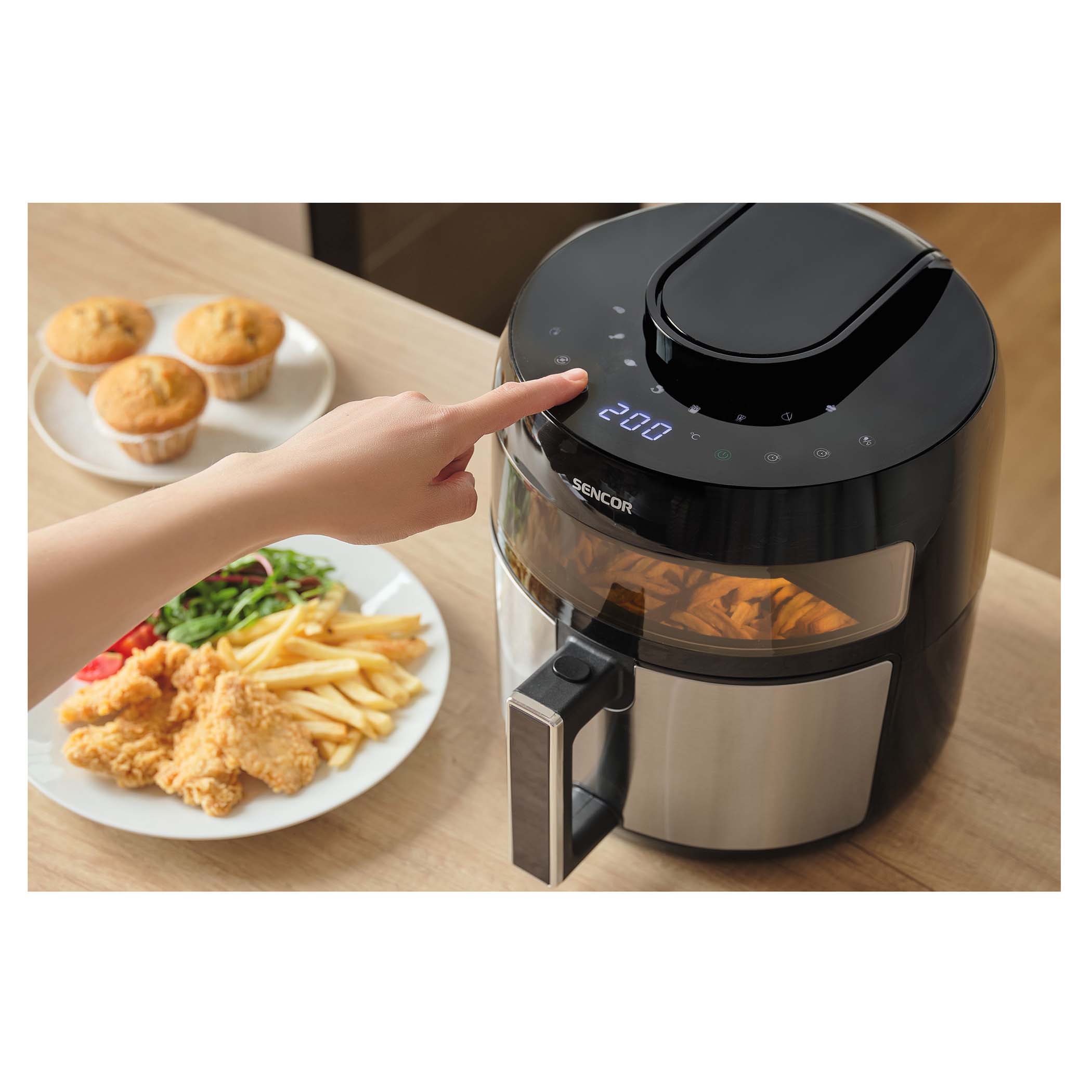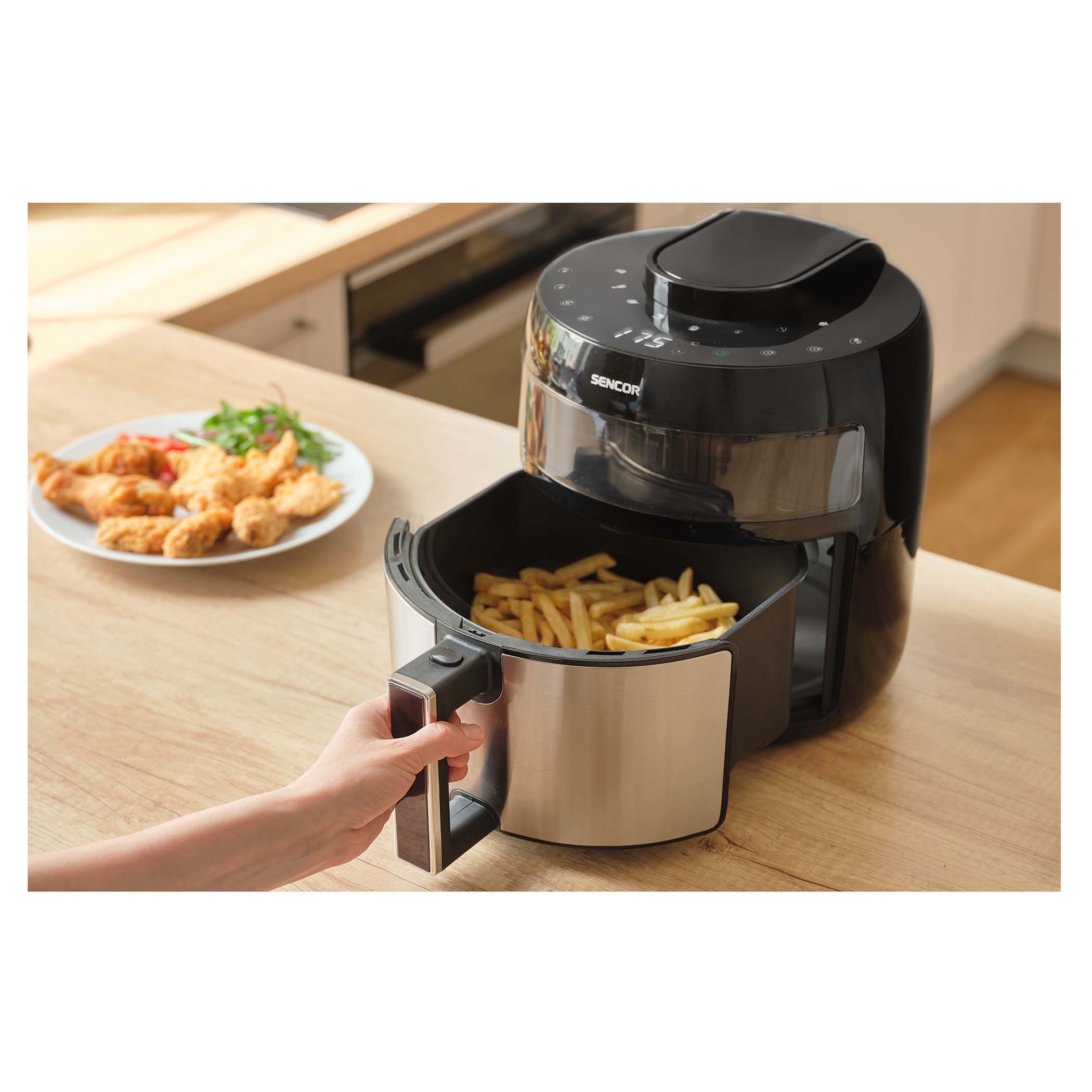 220-240 V, 50-60 Hz, 1350 W Casserole 4,5 l antiadhésive détachable Température ajustable : 80-200 °C Écran numérique frontal